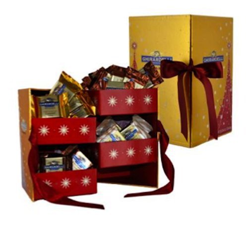 Treat the chocolate lovers in your life to gift you know they will love with the Ghirardelli 4 Tier Caramel Celebration Box. This 25.54-ounce gift box includes 40 of Ghirardelli's popular Squares™ chocolates in classic and limited edition cararmel flavors. Each Squares™ chocolate comes individually wrapped--perfect for sharing, pairing, and unwrapping. The collection comes ready-to-give in an elegant, holiday-inspired box that is tied with a red ribbon.
